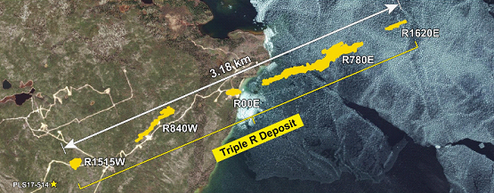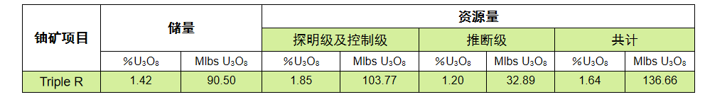 PLS項目目前已發(fā)現的礦體呈東西走向,從西到東依次為R1515W,R840W, R00E,R780E 和R1620E,長度約3.17 公里,組成加拿大薩斯喀徹溫省已發(fā)現的最長的高品位鈾礦成礦帶,亦是全球最大的待開發(fā)高品位鈾礦項目之一。當前勘探結果表明,PLS項目未來仍具備較高的資源增長潛力前景。