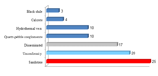International Atomic Energy Agency (2013) divides the world uranium deposit into 7 industrial types. The estimated percentages of all types amounting to the world resources are as follows: