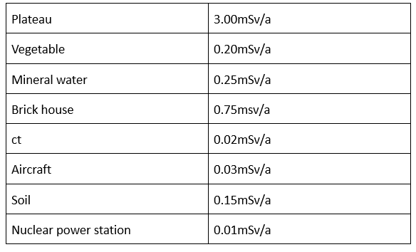 Ubiquitous radiation: Our foods, houses, sky and ground, mountains and vegetation, even bodies are radioactive. ≤250mSv/a, there is no harm to the human body.